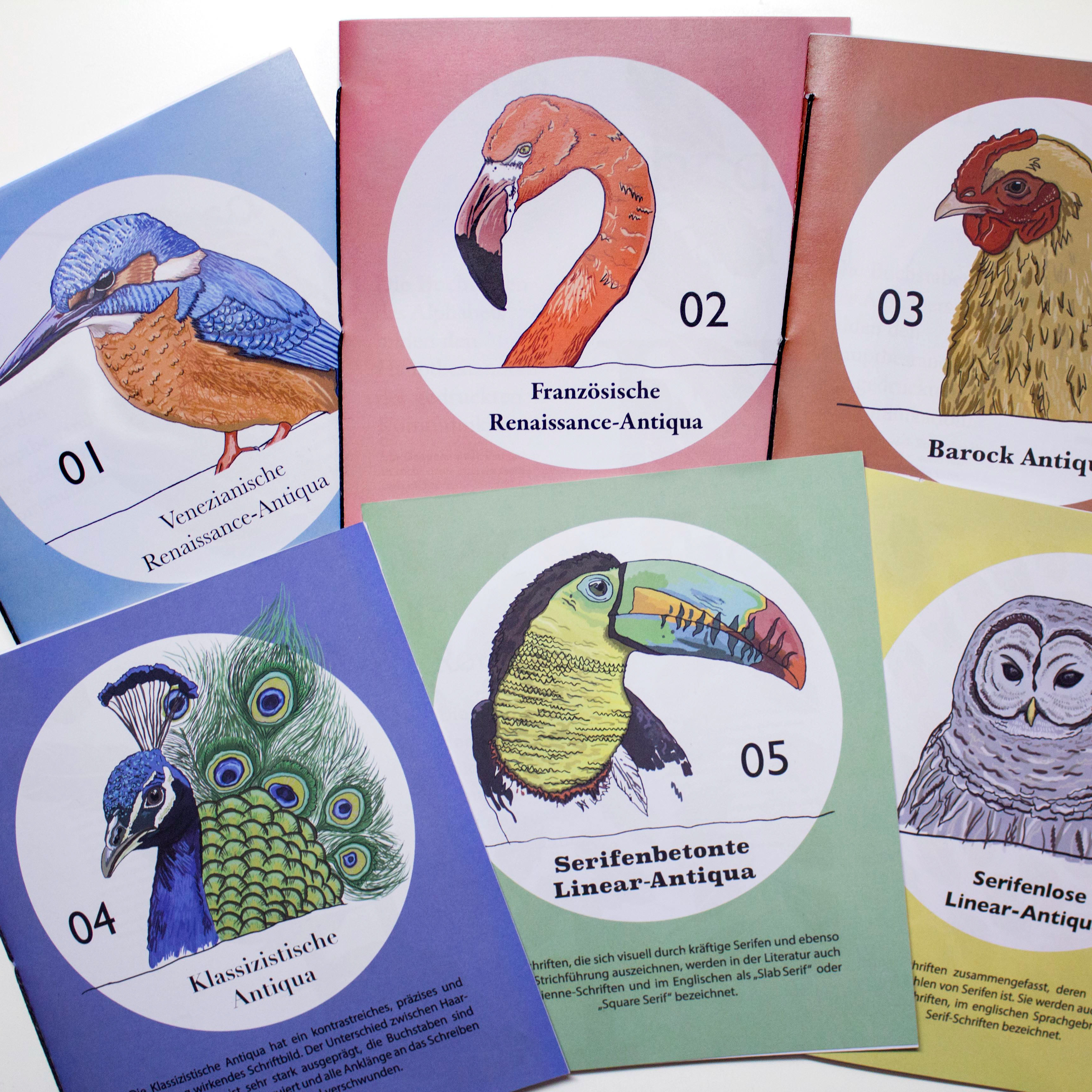 Booklets für die ersten sechs Schriftklassifikationen
